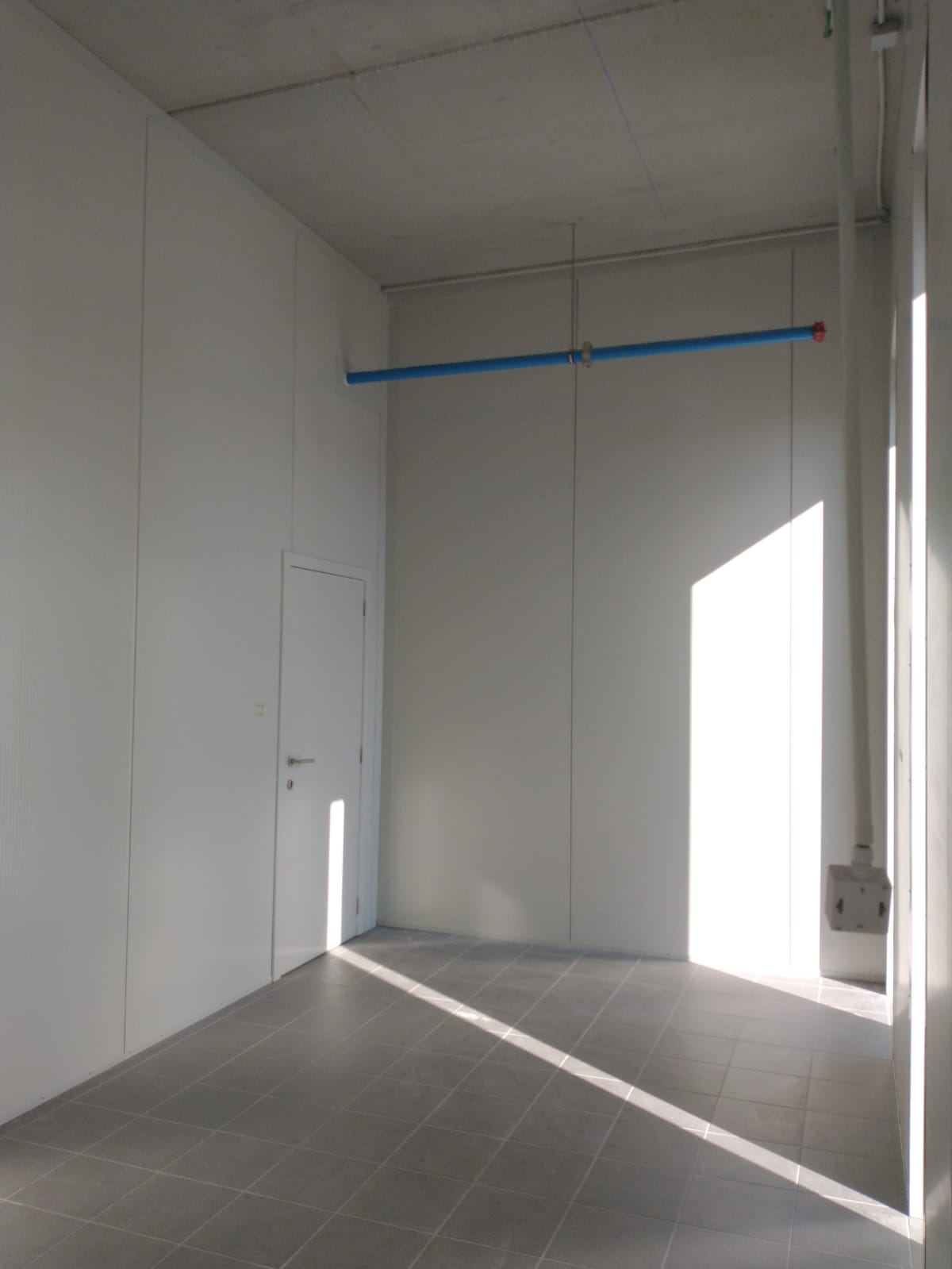 - Splitsing van een bestaande hal via een wand uit sandwichpanelen met geïntegreerde snellooppoort.