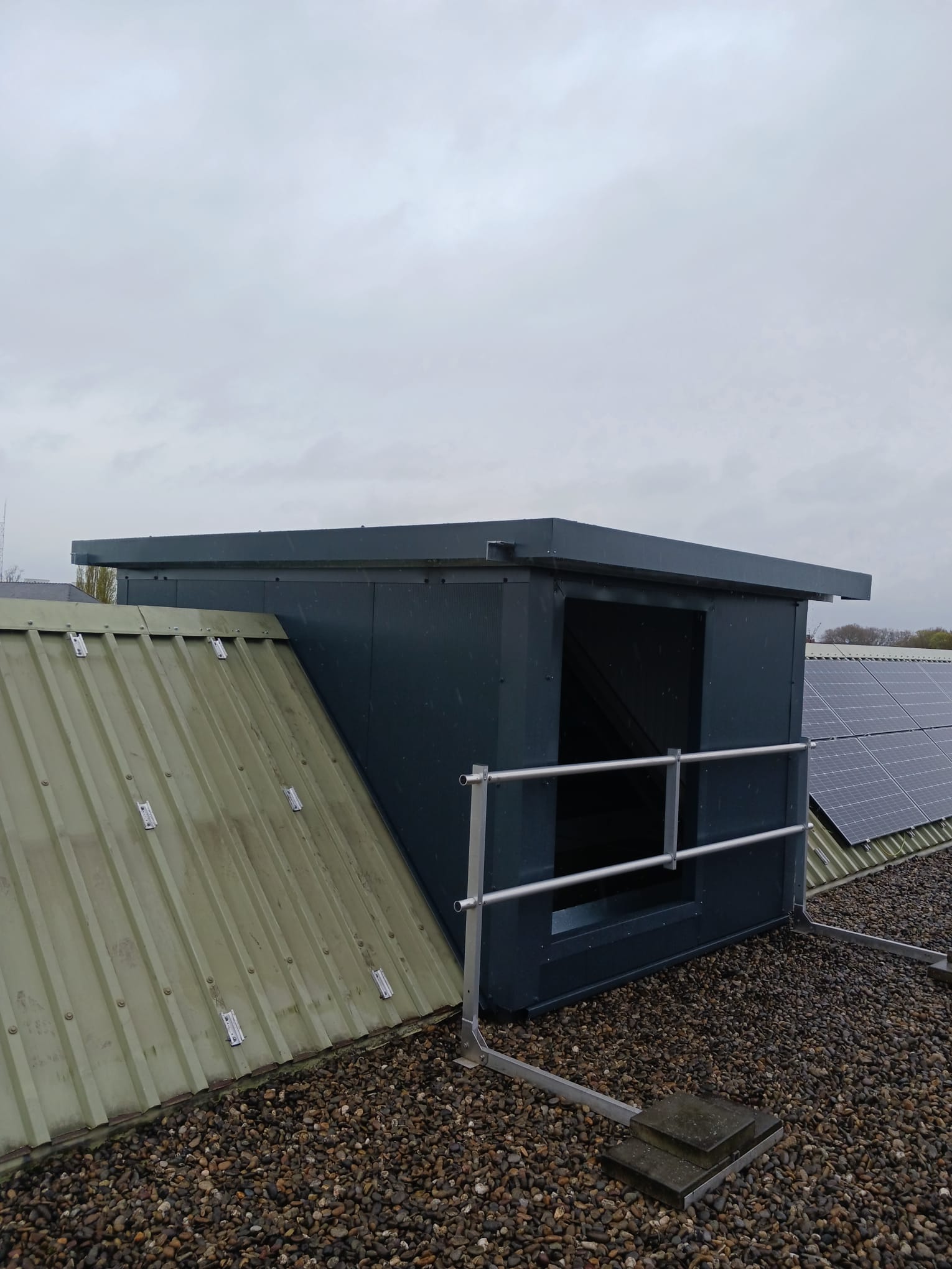 - Totaalproject inclusief staalstructuur, sandwichpanelen, ramen, deuren en plooiladder — volledig uitgevoerd door AS Mechanics.