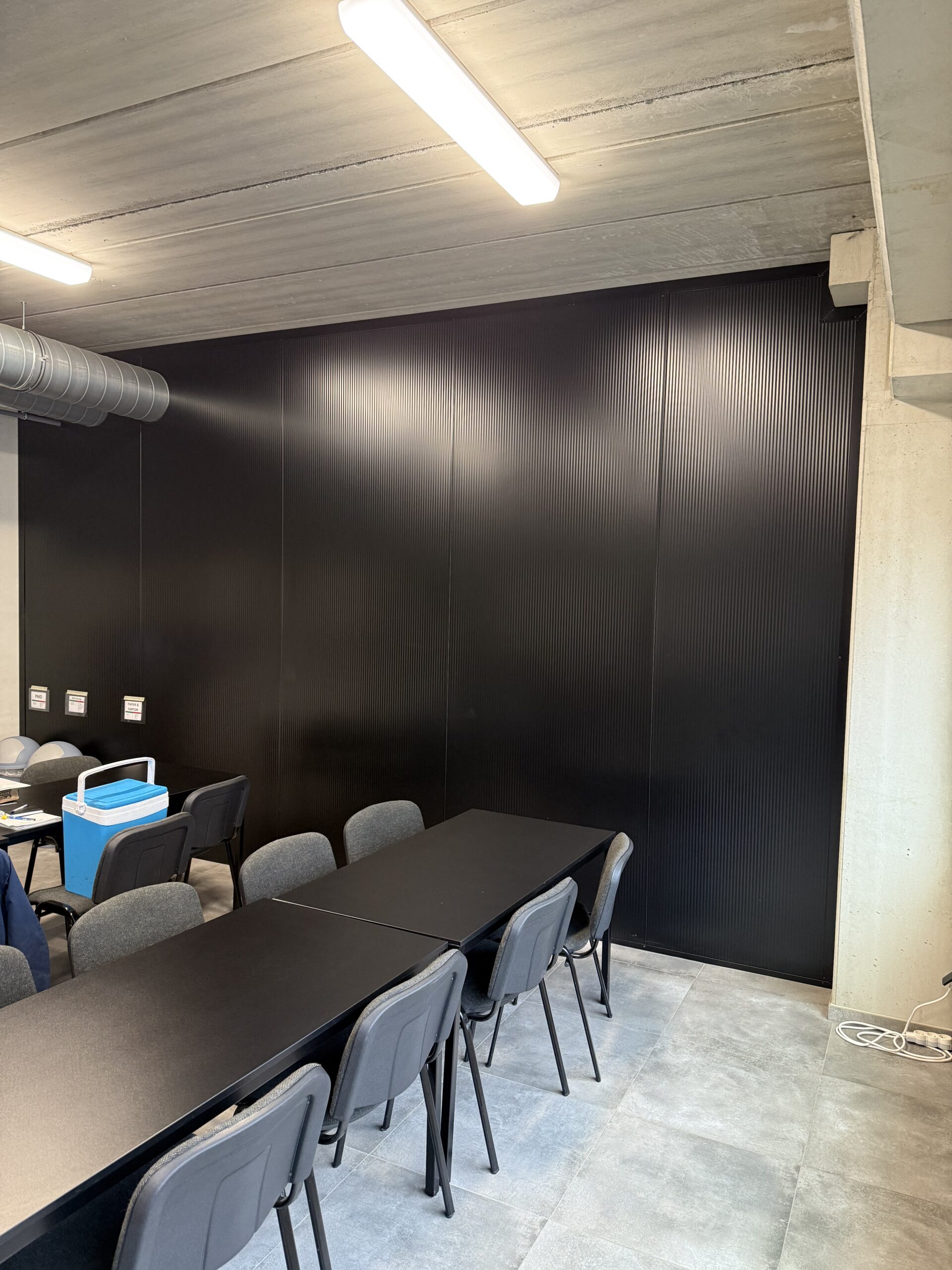 - Realisatie van een volledig afgewerkt afspuitlokaal met schuifpaneel in de voorzijde.